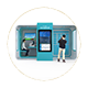 外观采用‌极简主义工业风‌,金属框架+玻璃面板设计,线条利落如“未来科技雕塑”,防刮耐磨涂层适配户外场景;内置4G/5G模块,支持远程运维与内容实时更新,让智慧服务始终在线。