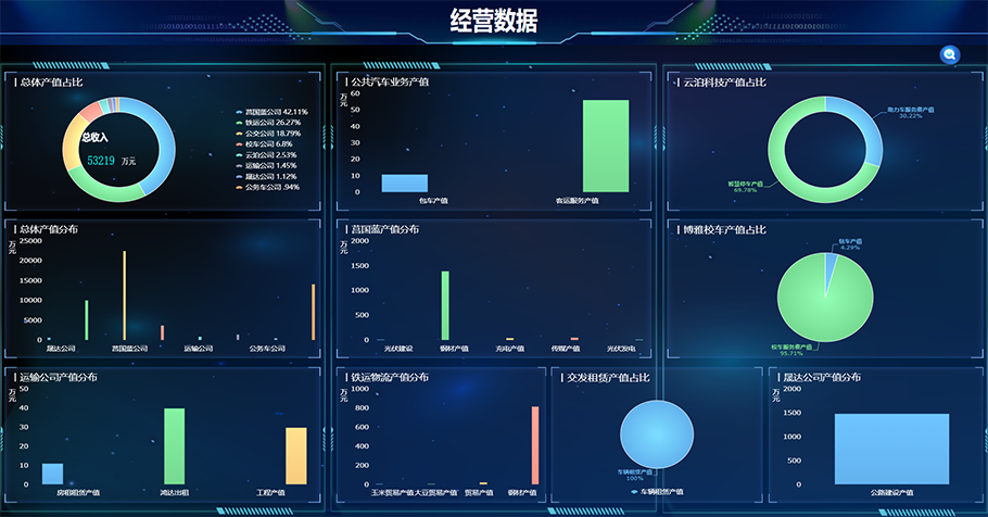 基于数据可视化与数字孪生技术,对企业经营概况、资源分布、营运质量、运营效能等核心指标进行宏观全景可视化监测与多维度钻取分析。为管理层提供“一屏感知全局、一键辅助决策”的智能化战略指挥工具。