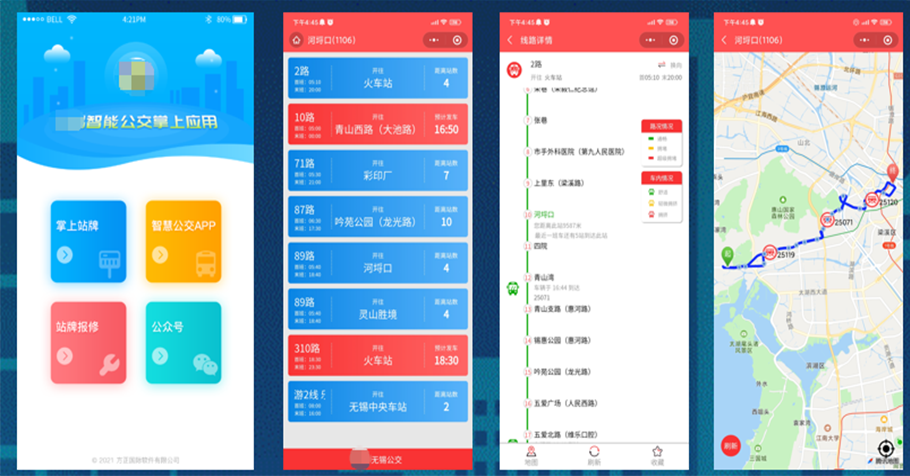 以微信小程序为载体,打造城市级公交统一的数字化服务前台。为公众出行提供精准报站实时服务、车内客流拥挤提醒服务、二维码虚拟站牌服务及其它交通接泊服务、舆论引导服务、公益宣传服务。