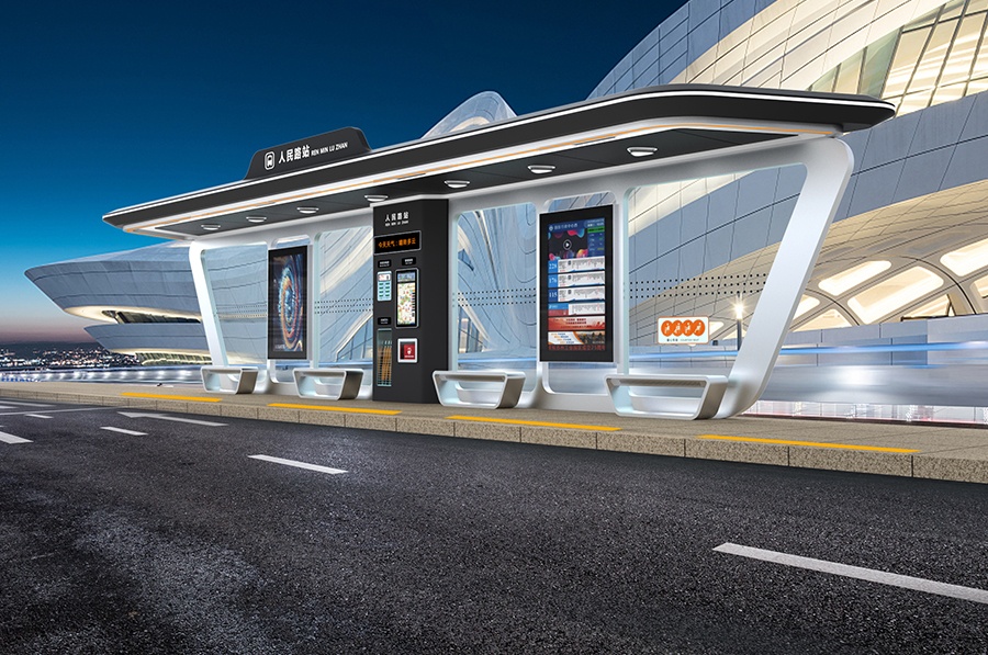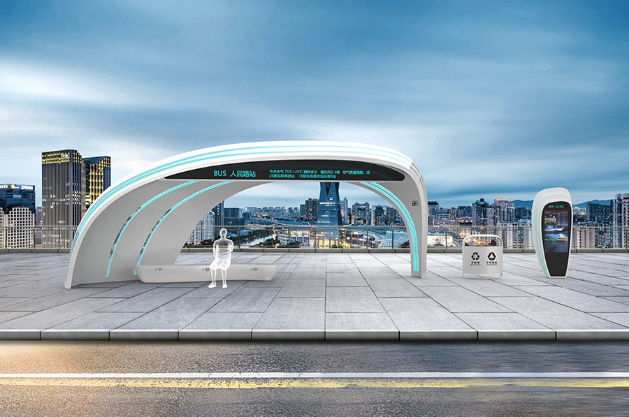 "科技赋能城市,智慧重塑出行"——以未来主义设计语言重构城市公共空间,将科技与都市美学完美融合,打造兼具功能性与艺术性的第五代智能候车系统。