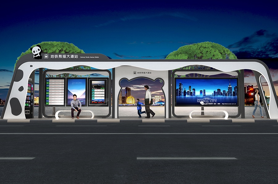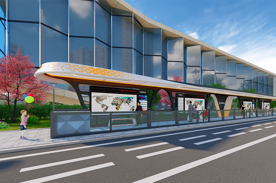 ‌①采用流线型钢结构与高透光玻璃幕墙结合,整体呈现出一种简洁、现代的科技感。这种设计不仅美观,还能有效地提升候车亭的结构强度。