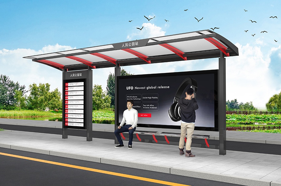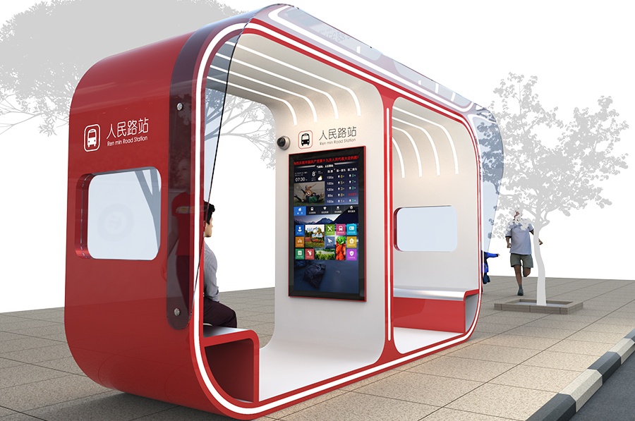 ‌65寸LCD屏‌:支持语音/触控多模态交互。‌动态信息聚合‌:通过5G网络连接公交调度系统,显示车辆位置、载客率及到站时间(误差±15秒),同步推送天气、应急通告等城市服务信息。